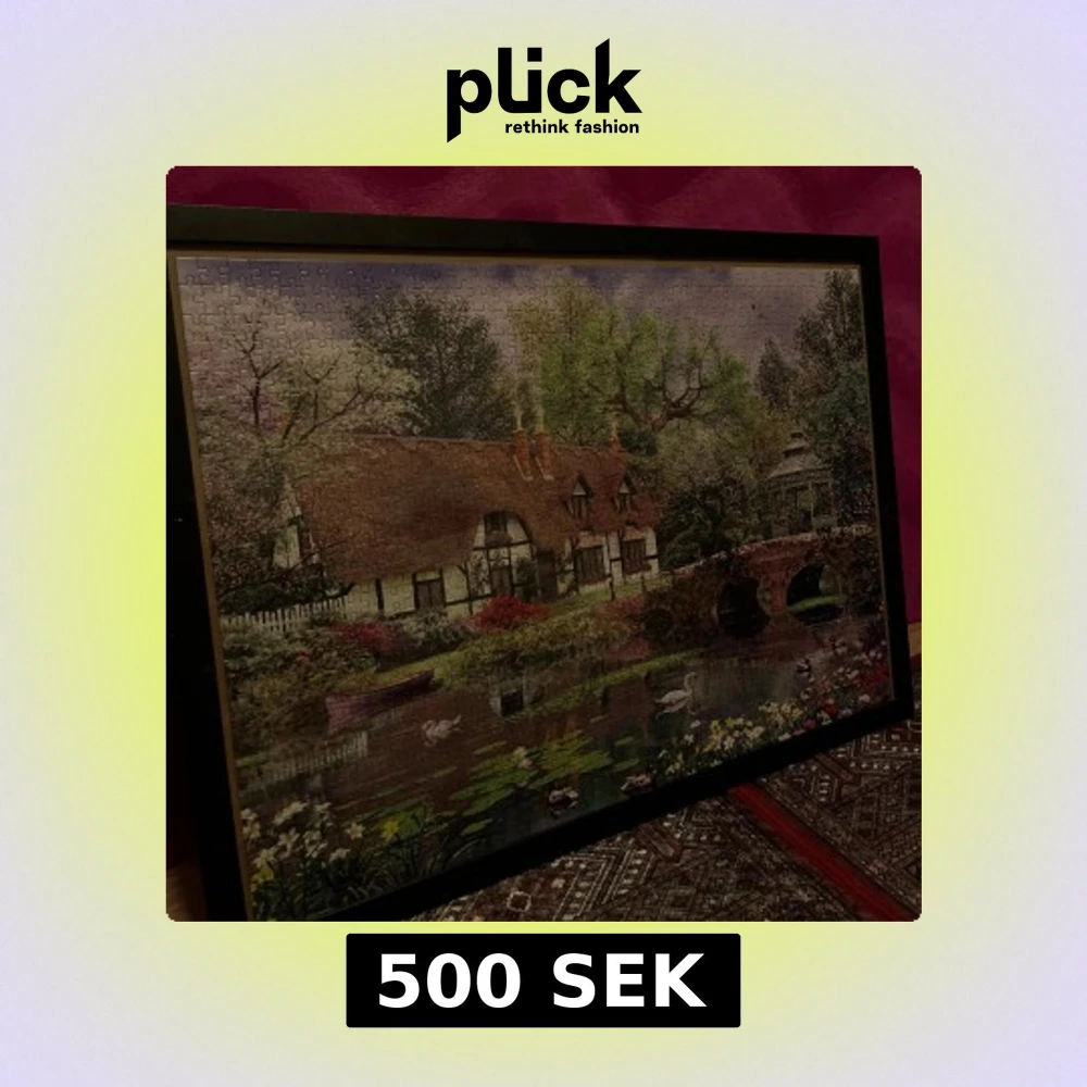 Det här är ett pussel med ett idylliskt motiv av en engelsk stuga vid en damm, omgiven av blommande träd, en stenbro och svanar. Perfekt för dig som gillar natur, avkoppling och vackra landskap. Pusslet är inramat och passar som dekoration i hemmet.