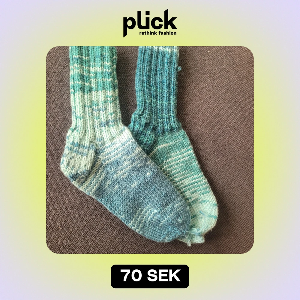Hemstickade raggsockor, ca storlek 39. Oanvända. De har olika garner, så olika nyanser på sockorna. Den ena inte den andra lik.