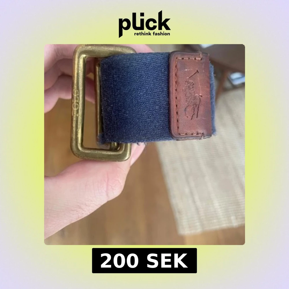 Snyggt mörkblått bälte från Polo Ralph Lauren med robust mässingsfärgat spänne och detaljer i brunt skinn. Bältet är gjort i bomullstyg och har en klassisk, stilren look med Polo-logga på läderpatchen. Perfekt accessoar för att lyfta din outfit. Haft det i några år och tyvärr blivit för tjock för det nu.