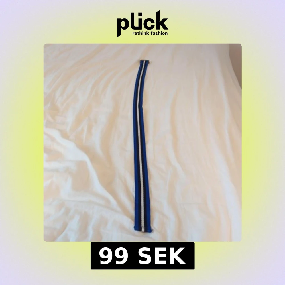 Snyggt blått Polo Ralph Lauren bälte med randigt mönster i svart och vitt. Perfekt för att ge en färgklick till din outfit. Bältet har en enkel design med en metallspänne som ger en stilren look.