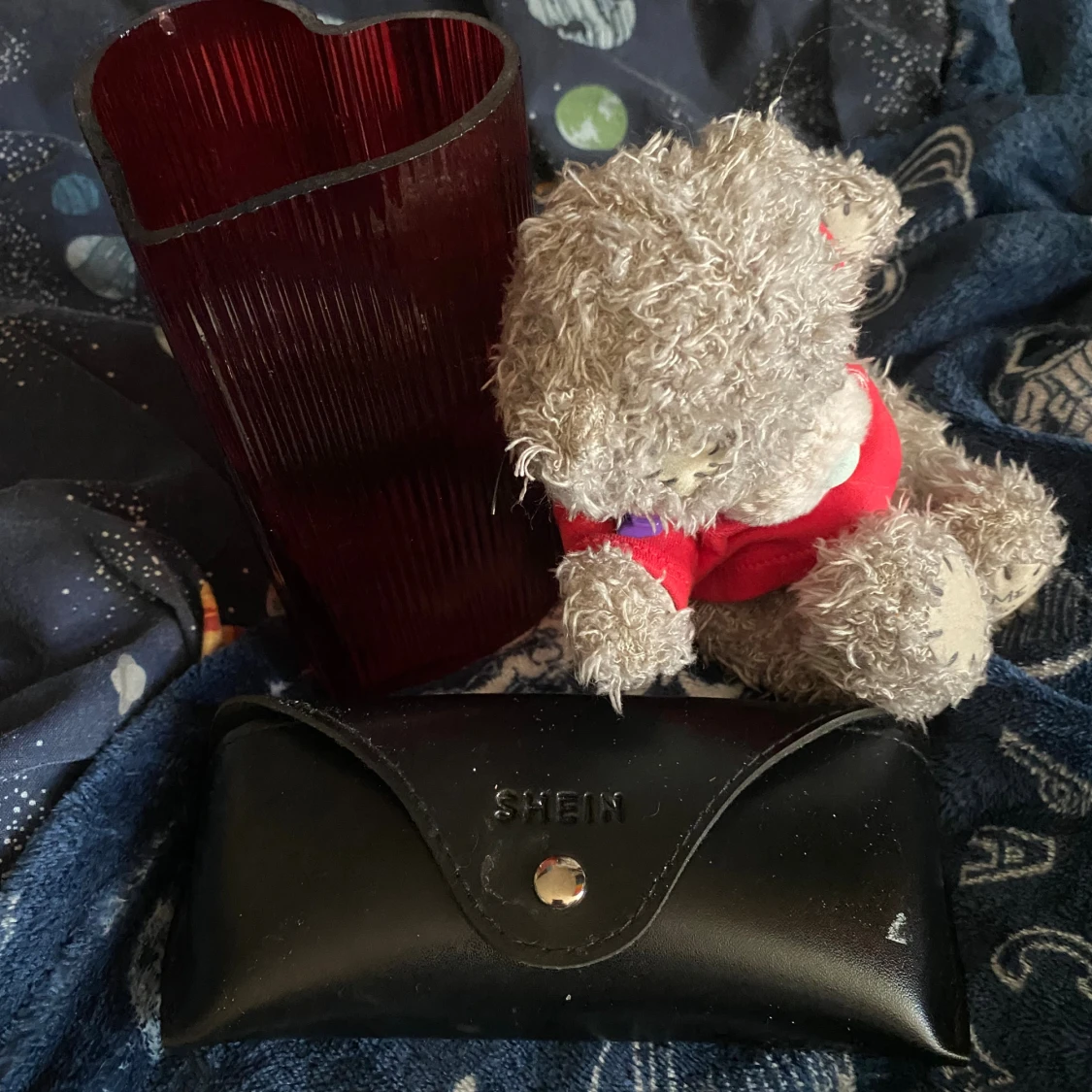 Röd glas vas i form av ett hjärta? En väldigt liten nalle där det står ”älskar dig så här mycket” med ett armband? Glasögon från SHEIN som ska få alla ljus att se ut som hjärtan. Dom funkar men ser lite unika ut-