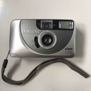 Säljer en Samsung Fino 15 se från min kamera samling. Analog kompaktkamera, blixt finns. Använder sig av 35 mm film. Lite repig på framsidan, därav priset!