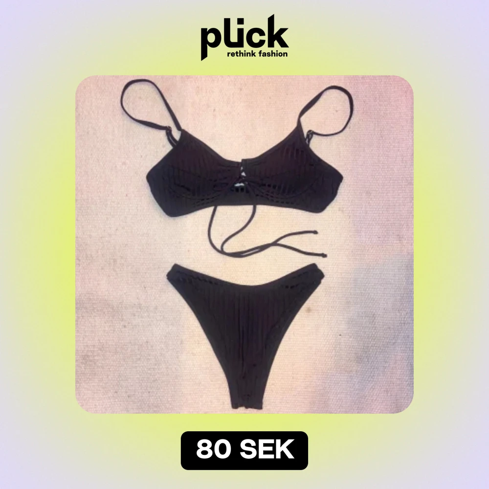Bikini i ribbat tyg. Knappt använd! Vadderade kupor och snörning framtill. Högmidjade trosor