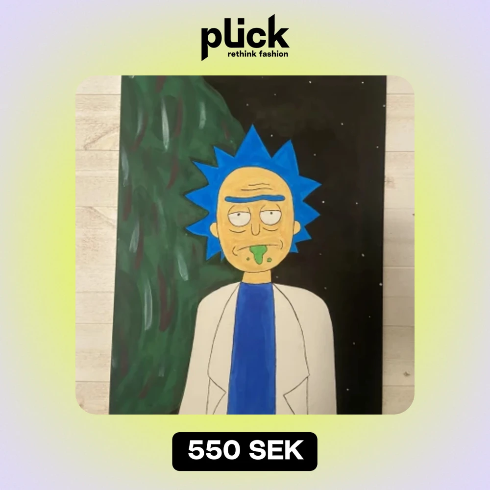 Säljer en handgjord målad canvas som är gjord med akrylfärg. Det är Rick från Rick and Morty i centrum. Den är 70x50 cm. Priset är diskuterbart