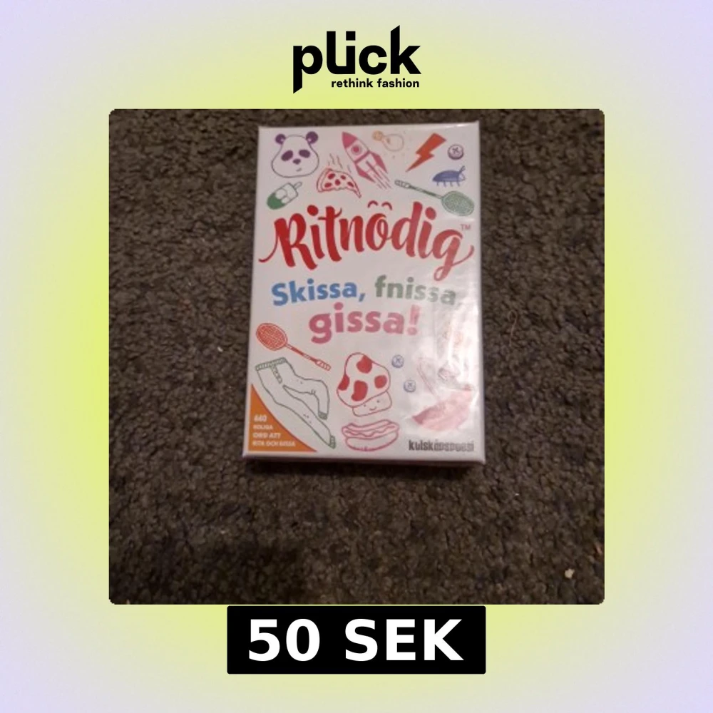 Ritnödig är ett fartfyllt och underhållande rita-och-gissa-spel med över 400 roliga och knasiga ord att skissa. Perfekt för spelkvällar med vänner eller familj där skratt och tokiga gissningar garanteras. Enkelt att spela i lag – skissa, fnissa och gissa!