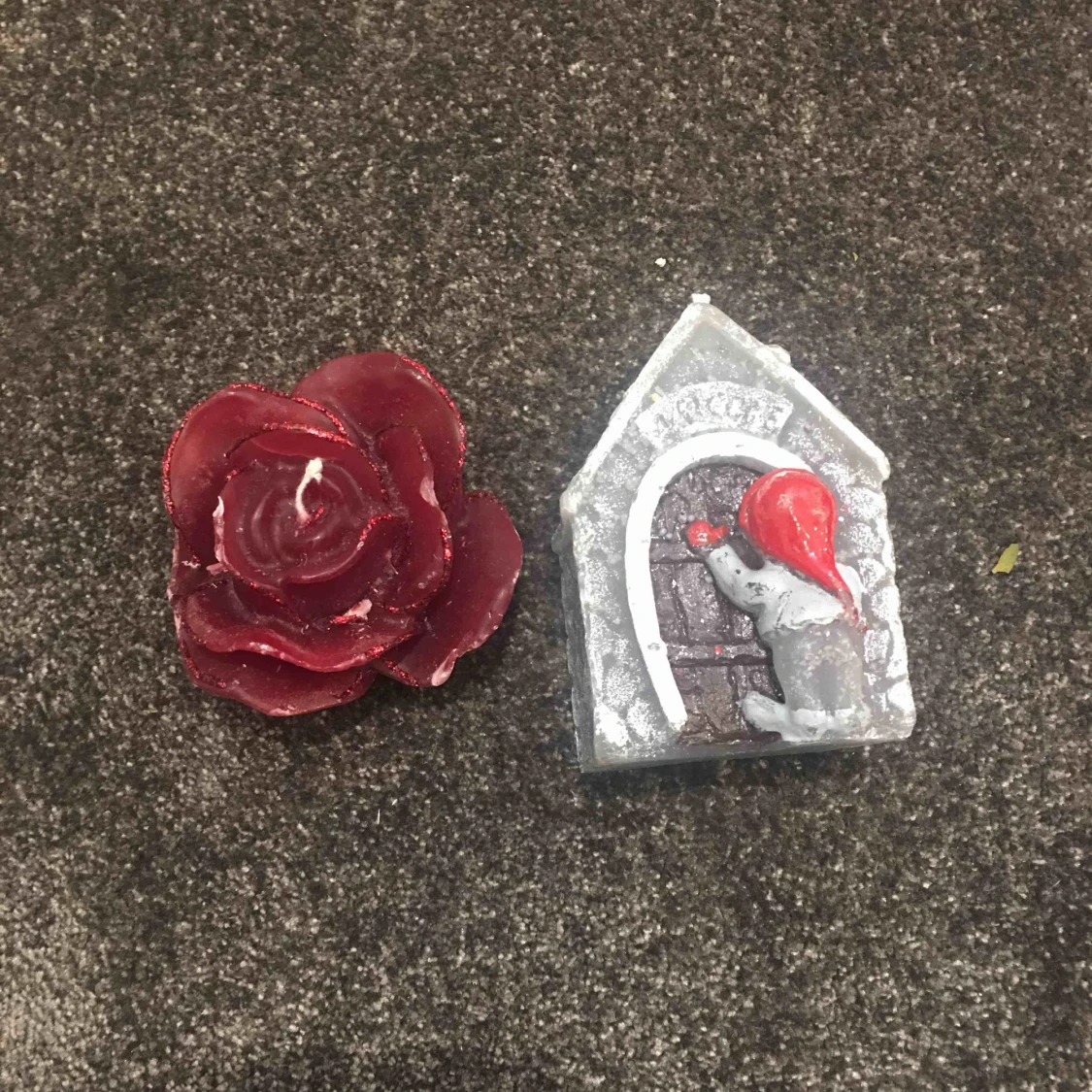Två ljus ett hus och en ros båda för 30 kr frakten betalar jag ej betala med swish