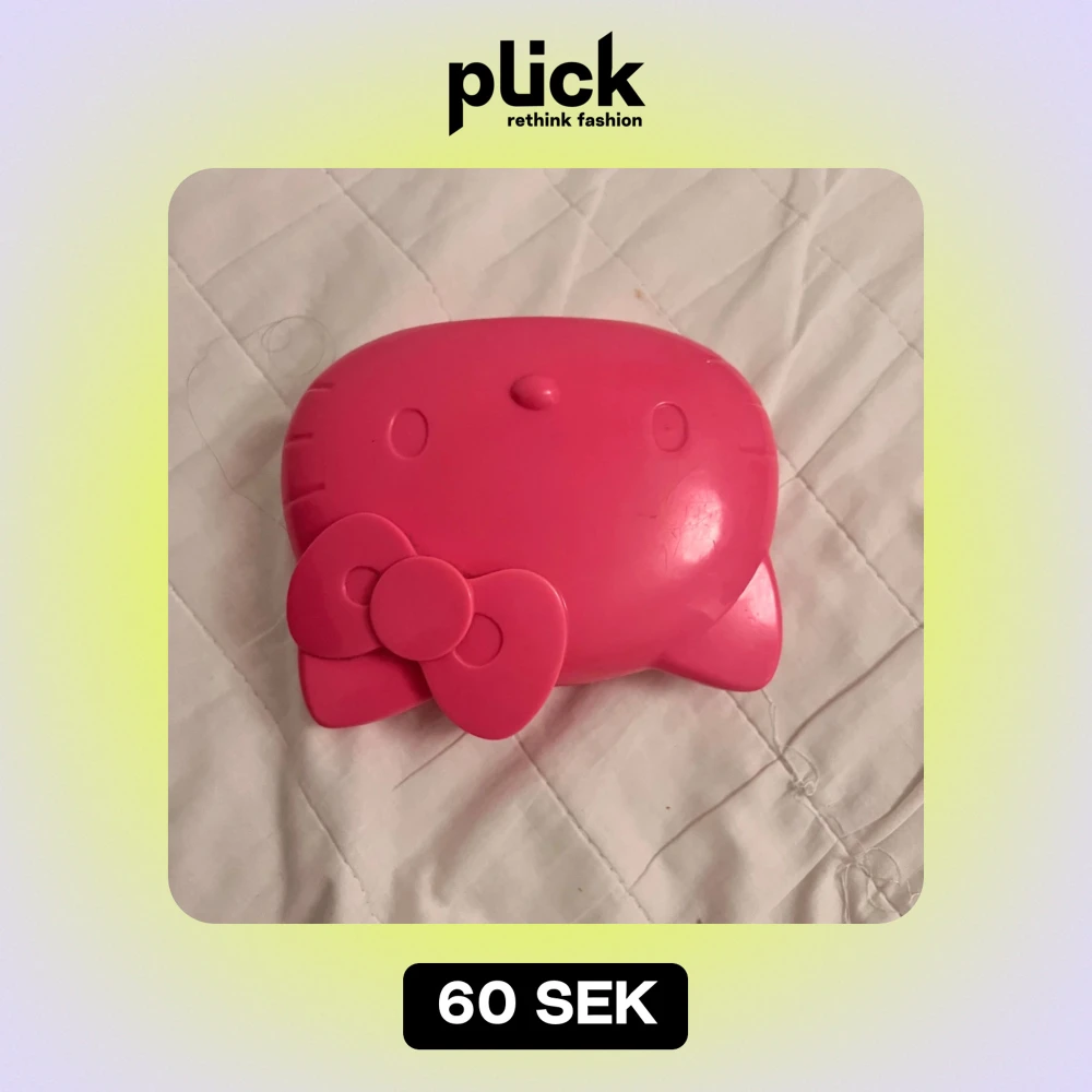 Söt rosa Hello Kitty box i form av Hello Kittys ansikte. Den har en rosett på sidan och öppnas som ett litet etui. Perfekt för att förvara småsaker eller som en rolig accessoar. Den är vintage och har funnits massa år (Sedan 2014) 🐈⬛🎀