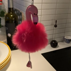 rosa fluffig flamingo nyckelring
