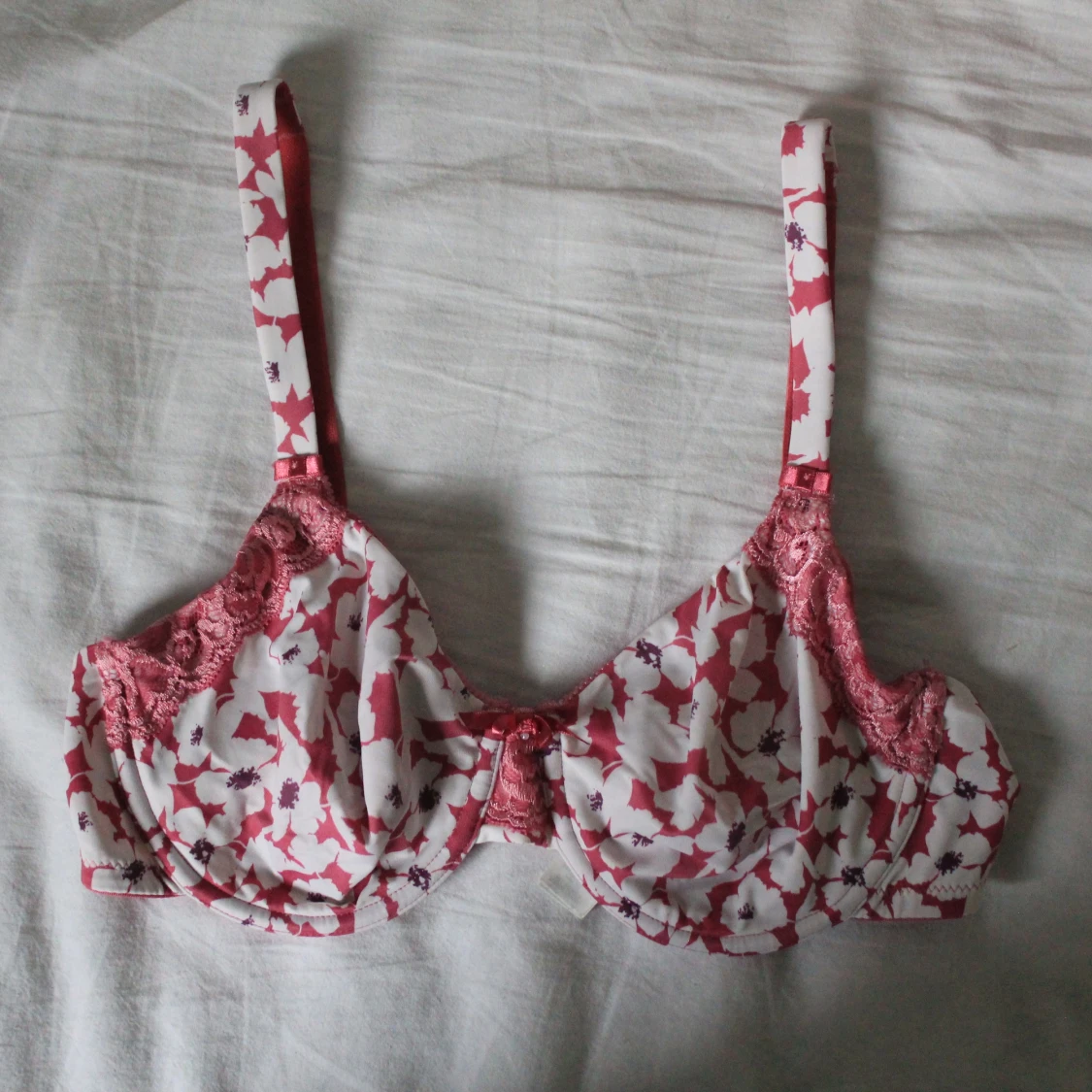 Supergullig bh från Marks & Spencer! Rosa med vita blommor och spetsdetaljer. (Färgen är mer rosa i verkligheten). Meshtyg på insidan. Väldigt mjukt tyg. INTE vaddering. Nästan nyskick. Skriv till mig för mer info!🥰