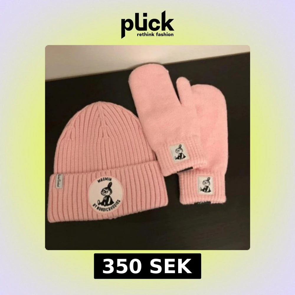 Oanvänd rosa mössa och vantar med Lilla My på. Från Nordicbuddies. Vantarna är slutsålda(nypris: 223kr). Mössan finns inte längre att köpa ny (liknande mössor på hemsidan finns för 390kr). För dig som älskar Mumin/moomin.