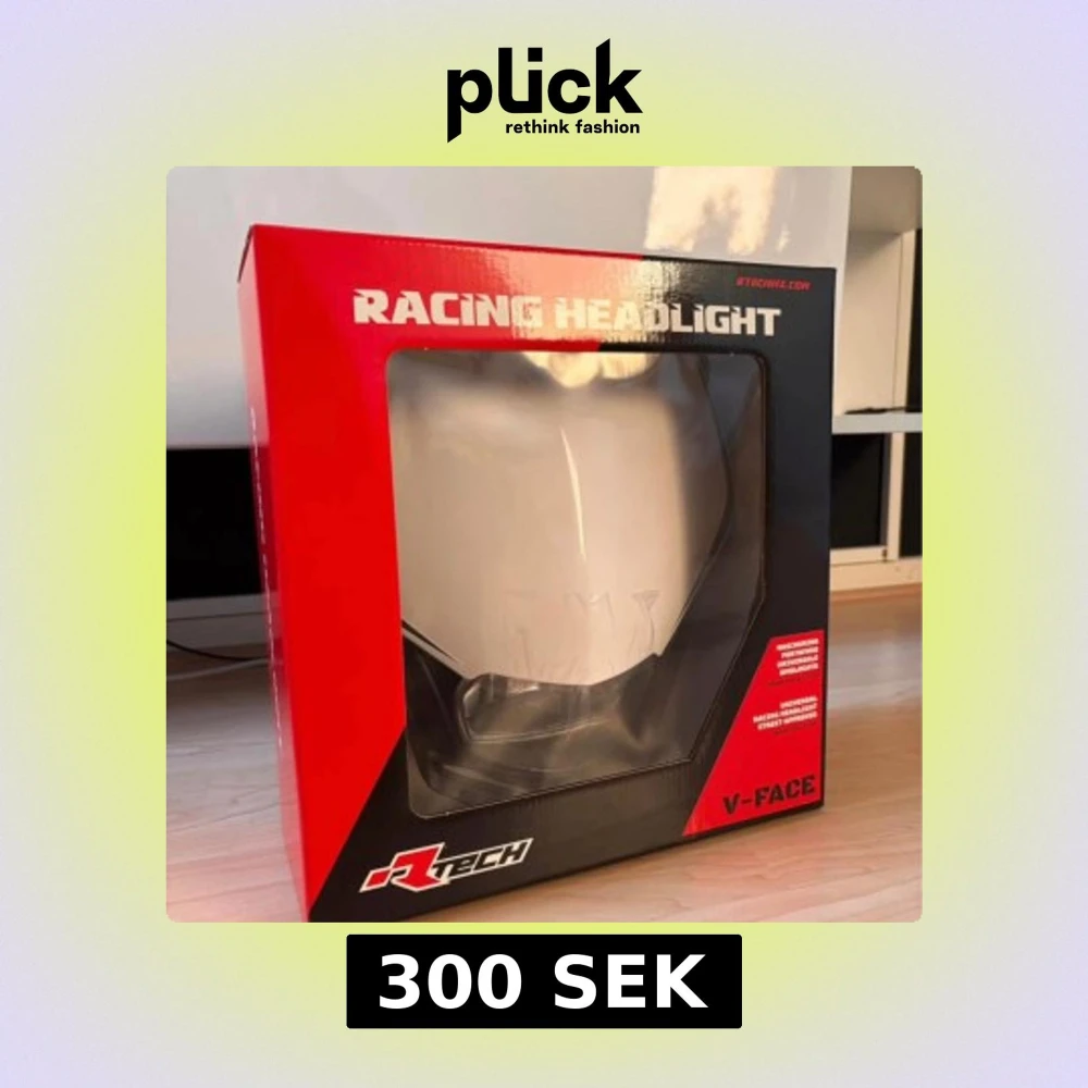 Ny, oöppnad RTech V-Face Racing Headlight. Universell passform, godkänd för gatubruk. Utrustad med halogenlampa 12V/35W. Perfekt för dig som vill byta ut en original lampa.