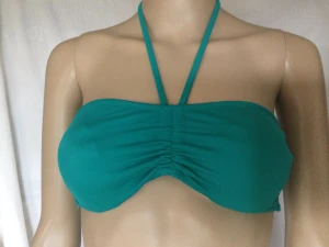 Ny och oanvänd bikiniöverdel 80 % polyamid 20% elastan Tunn vaddering som går att plocka ut knytband i nacken och spänne över rygg. Turkos