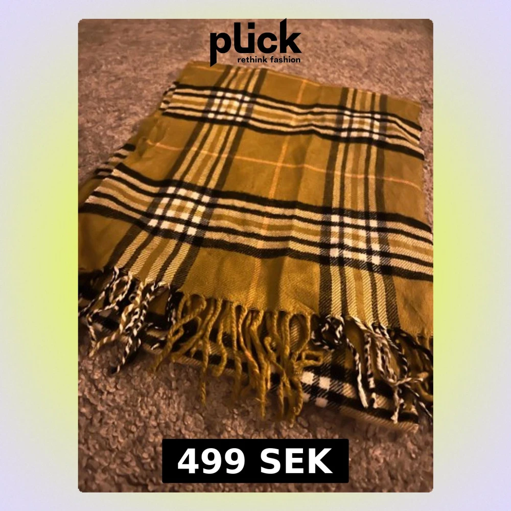 Snygg rutig halsduk från Burberrys i gul och beige med svarta och vita detaljer. Klassisk design med fransar i ändarna och mjukt material av 100% lammull. Perfekt att slänga över axlarna för en cool och tidlös look.