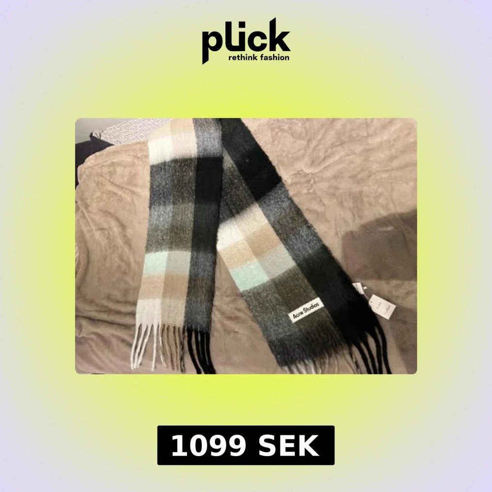 Snygg och fluffig halsduk från Acne Studios med rutigt mönster i lite olika färger. Halsduken har långa fransar i ändarna och en tydlig Acne Studios-logga. Perfekt för vintern, riktigt varm och tjock!