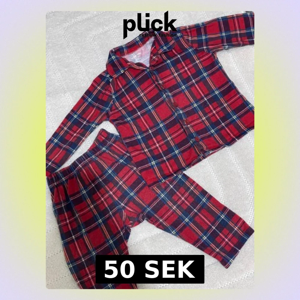 Säljer en mysig rutig pyjamas från LON BABY i rött och mörkblått med klassiskt krage och knappar framtill. Setet har långa ärmar och ben, perfekt . Mönstret är tidlöst och färgerna poppar verkligen. Passar dig som gillar chill och stil.