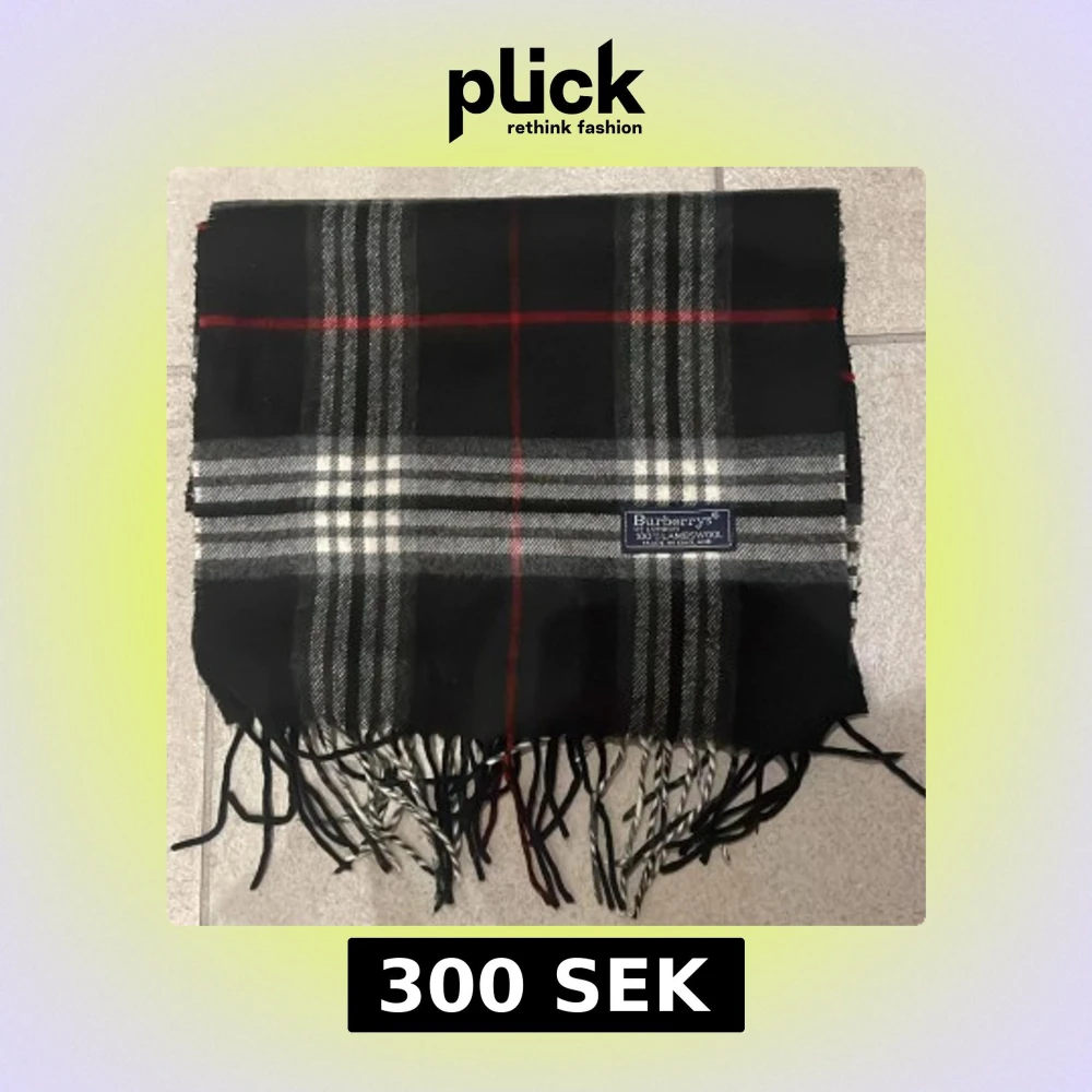 Klassisk rutig halsduk från Burberrys i svart, grått, vitt och röda detaljer. Gjord i 100% lammull och har fransar i ändarna. Perfekt accessoar för att lyfta din outfit med en tidlös brittisk känsla.