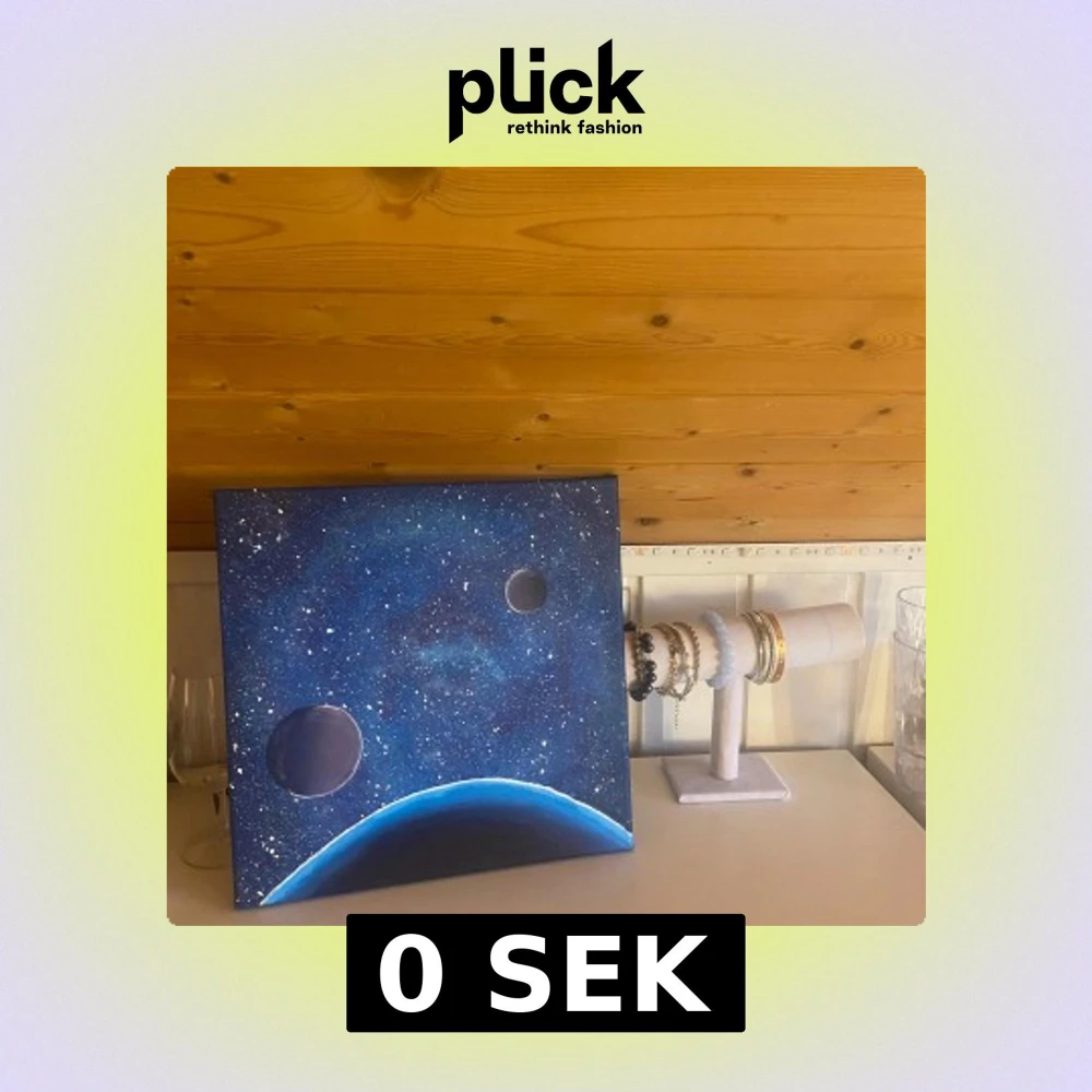 En canvas som jag målat som visar en fantasifull rymd med planeter och stjärnor mot en djupblå bakgrund. Hör av er om ni skulle vara intresserade🤗