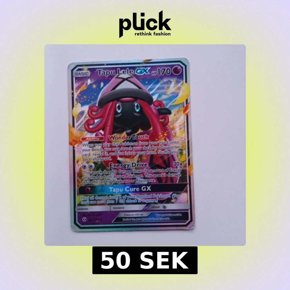 Säljer ett Tapu Lele GX Pokémonkort med 170 HP. Kortet har förmågan Wonder Touch och attacker som Energy Drive och Tapu Cure GX. Perfekt för samlare eller spelare som vill förstärka sin kortlek.