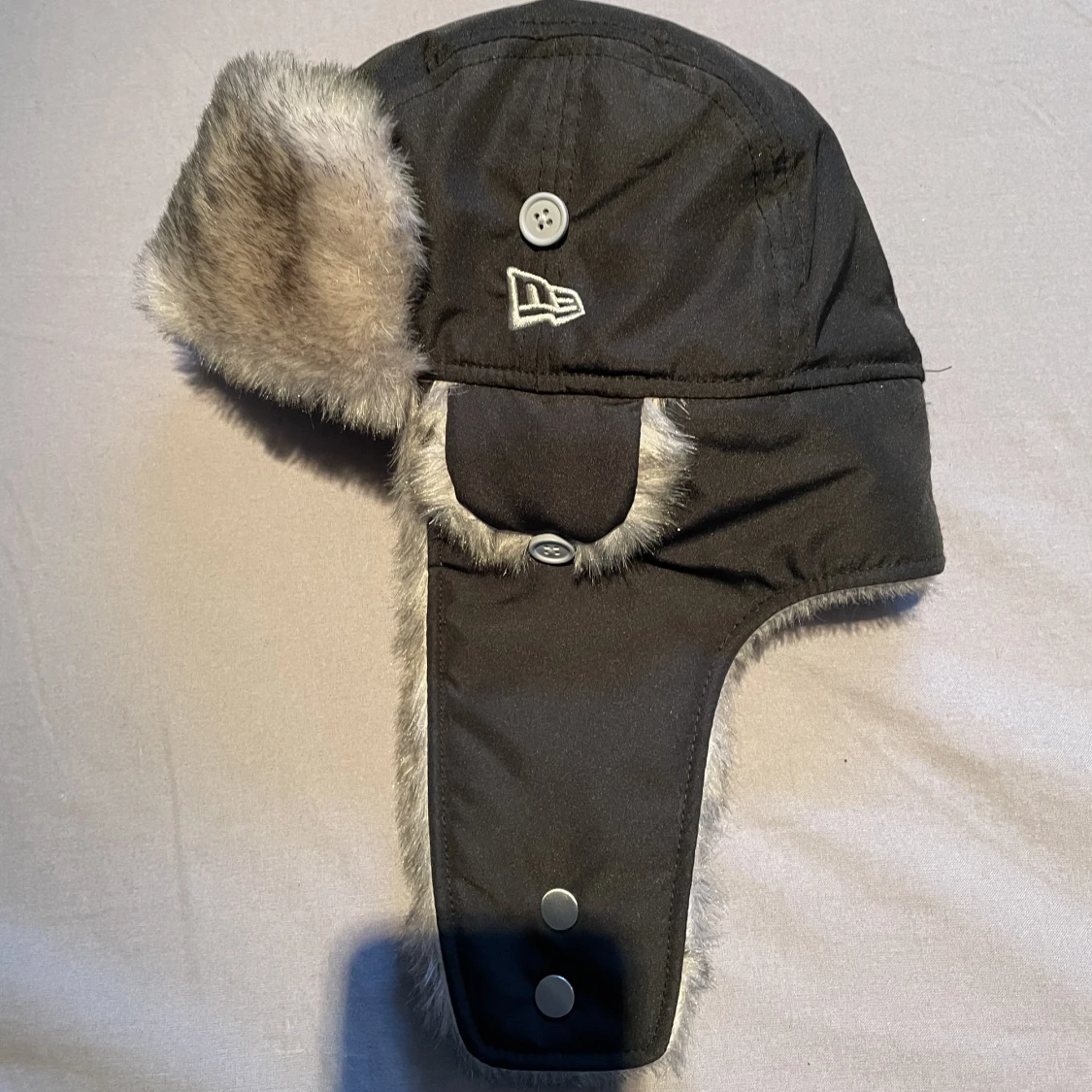 New era pälsmössa i oanvänt skick. Köpt på hatstore för 450kr. Lapparna på sidorna är uppfällbara! Storlek S