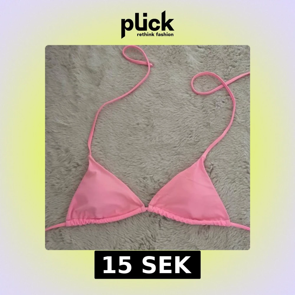 Snygg rosa bikiniöverdel i klassisk triangelmodell med tunna snören som knyts i nacken och ryggen. Perfekt för stranden eller poolen, enkel och stilren design som ger en fräsch look. Materialet känns mjukt och följsamt mot huden.