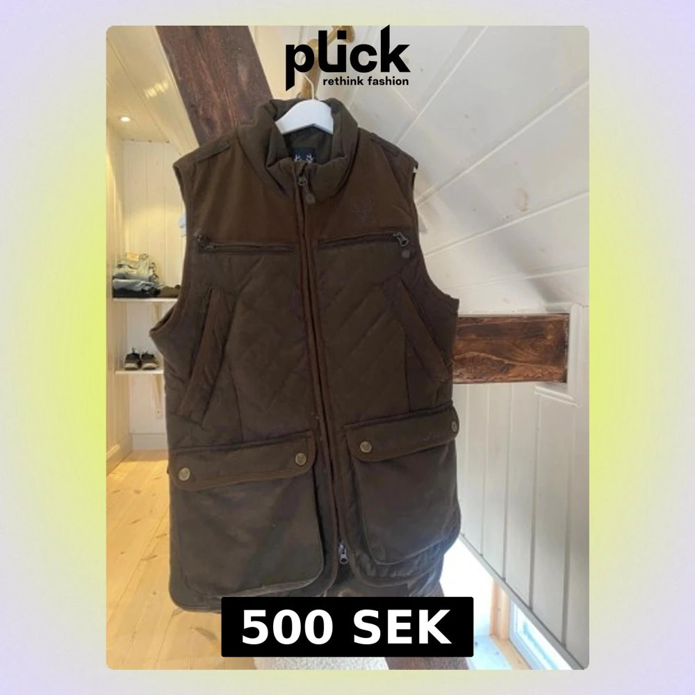 Säljer en brun quiltad väst från jägarliv i storlek S. Västen har flera fickor med dragkedja och tryckknappar, hög krage och snyggt rutmönster. Perfekt för lager-på-lager och jakt. Materialet är slitstarkt och känns robust.