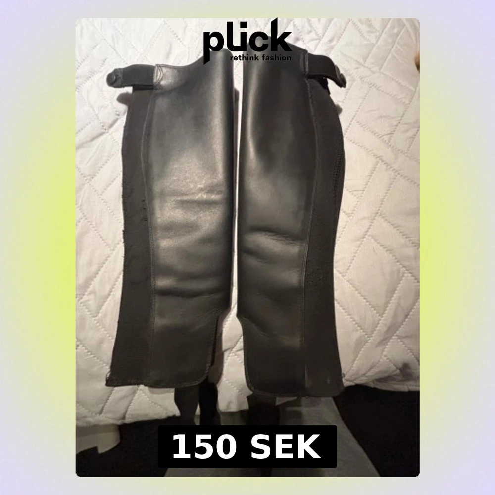 Ett par klassiska CRW shortchaps i äkta skinn, storlek S. Resårpanel som ger bra passform. Dragkedja och tryckknappar fungerar som de ska.