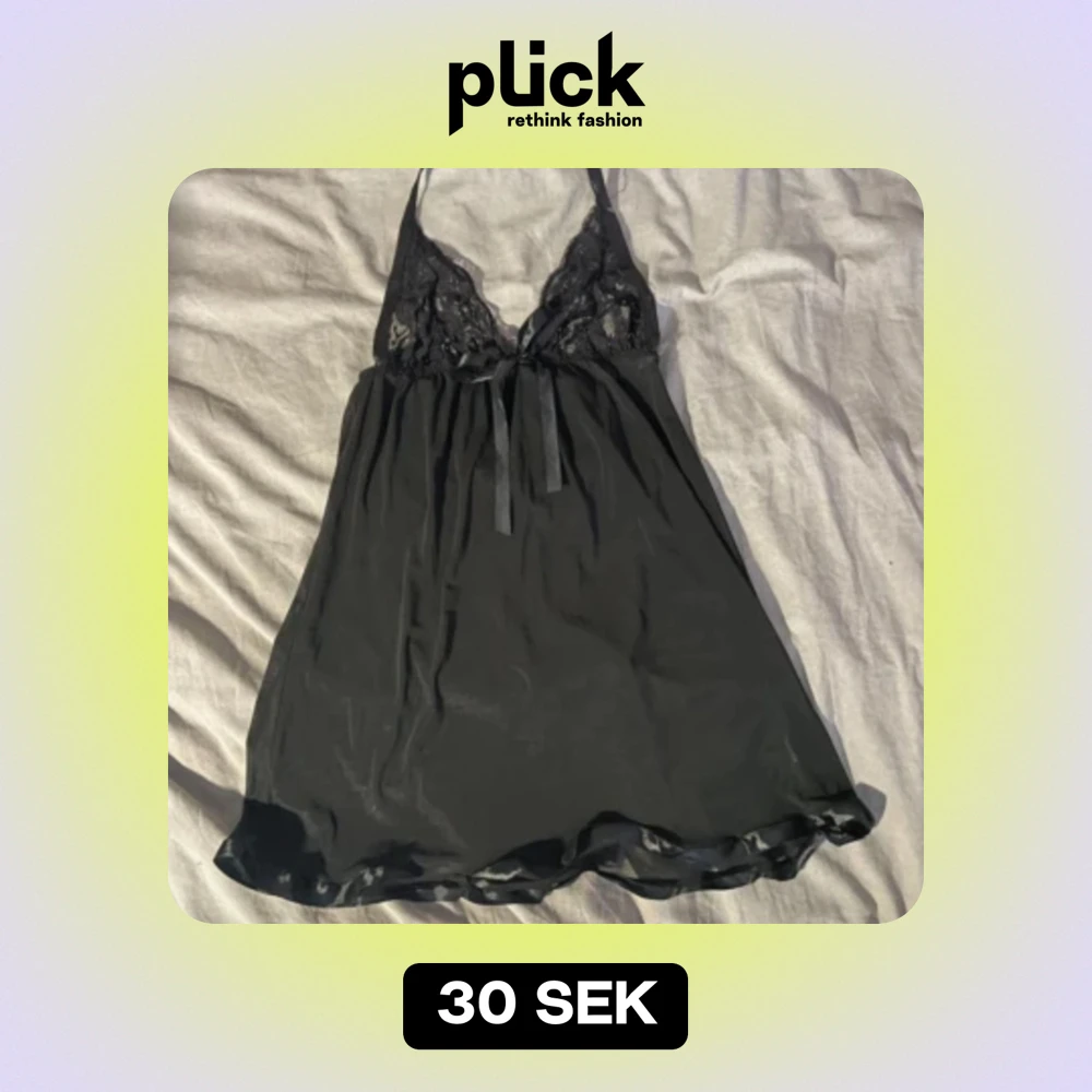 Nattlinne i mesh med spets kupor, öppen i ryggen. Knyts med sidenband i nacken. En rosett fram! Storlek S