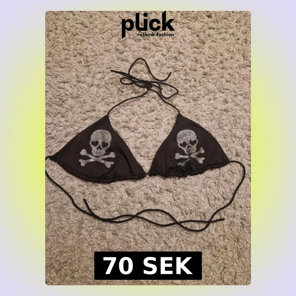 Svart bikini överdel med dödskallar aldrig använd Storlek S