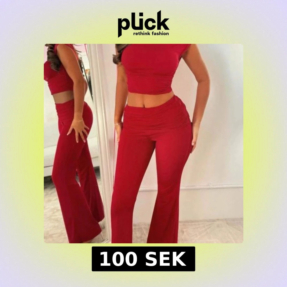 Snygg röd croppad topp med ärmlös design och tight passform. Perfekt för en trendig look. Den var för liten på mig