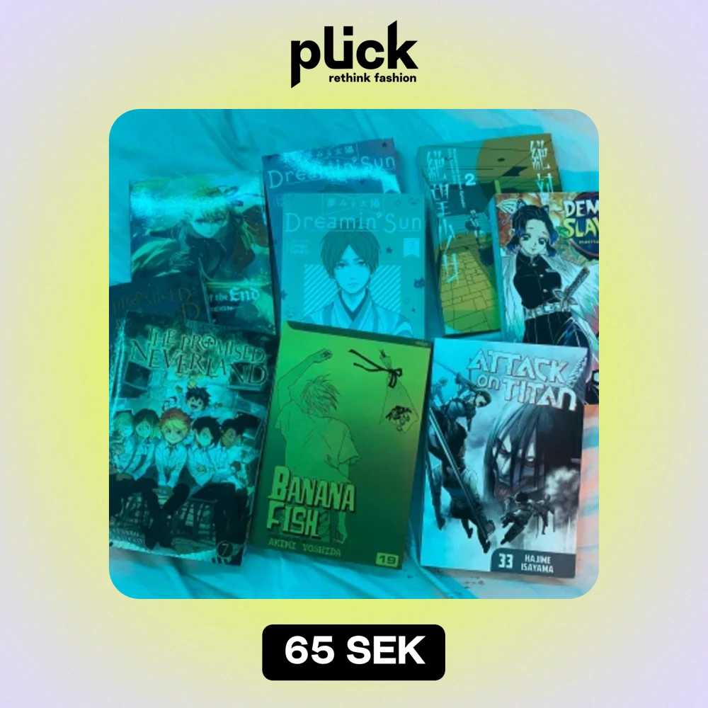 de mesta kostar 65kr st och 2 för 110kr🫶 death note och aot junior high kostar 110kr st :) alla är olästa och i bra skick, mesta är ifrån sci-fi bokhandeln💕 postern som medföljer i seraph of the end har ja tyvärr tagit ut :( pris kan diskuteras🫶