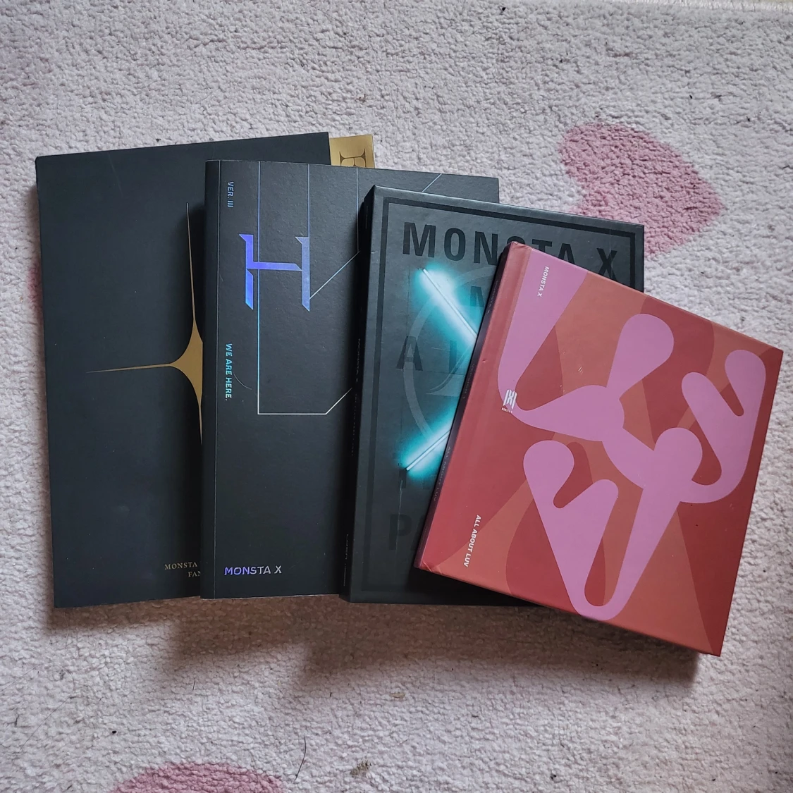 Säljer Monsta X album (4st) pcs och Skrivor finns :)