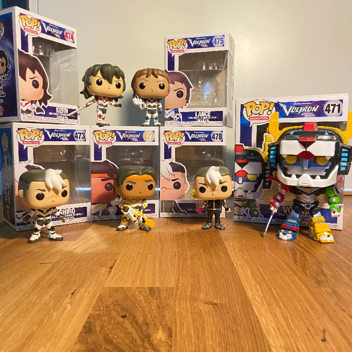 Voltron Funko Pops: Keith, Lance, Shiro, Shiro Limited Edition, Hunk och Voltron ingår som på bild. Säljs till hälften av ordinarie pris
