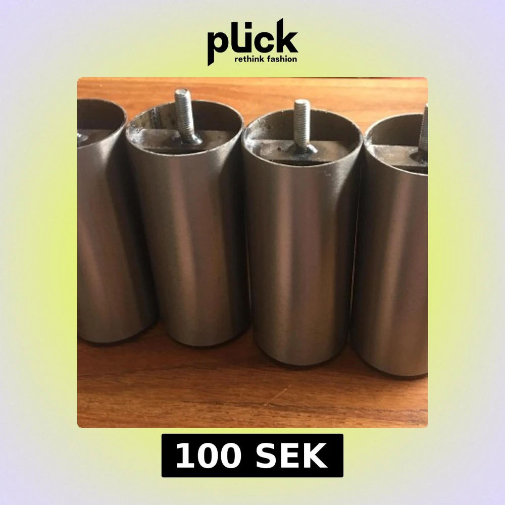 Fyra robusta metallben med gängad skruv för enkel montering på sängbotten. Benen är i gott använt skick.
