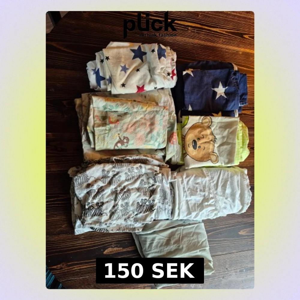 Sängkläder till spjälsäng i bra skick. 5 st påslakan med örngott o 2 st lakan.