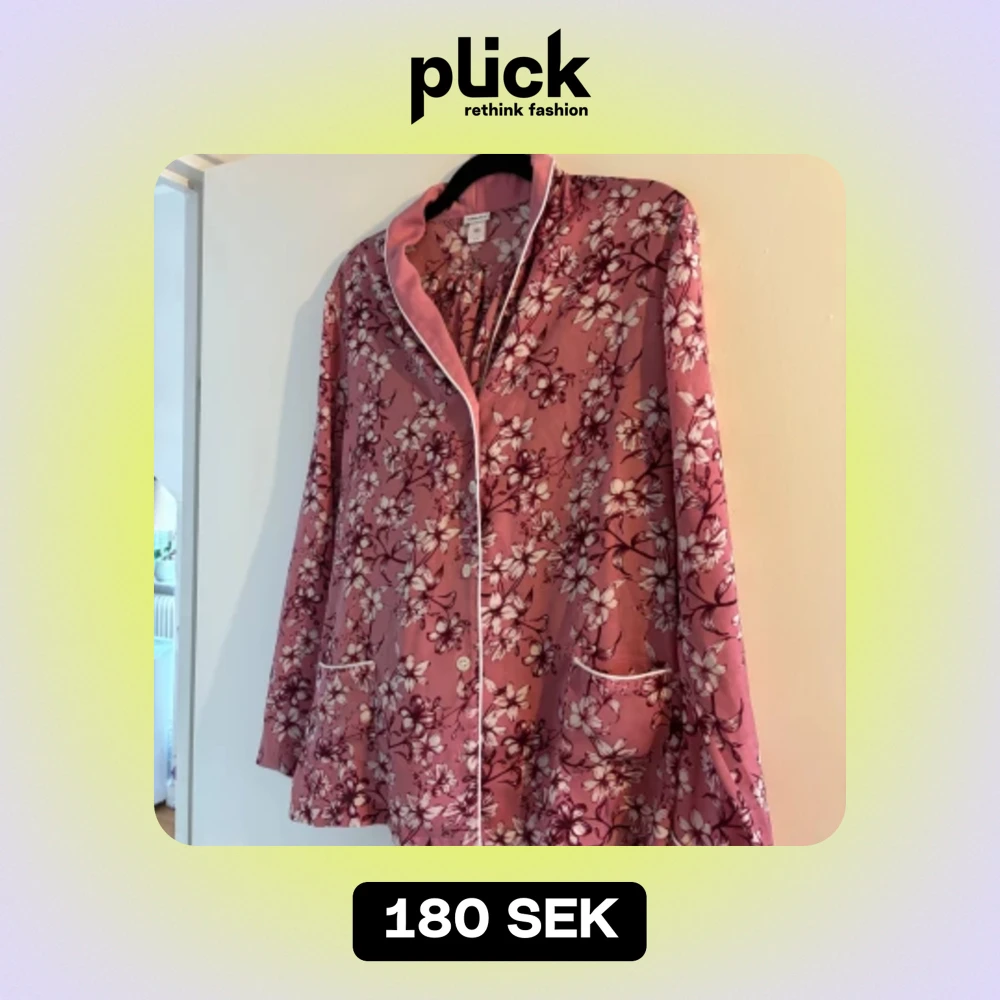 Som nya. Både pyjamas tröja och pyjamasbyxor i satin liknande material, resår i byxornas midja. Blommigt mönster