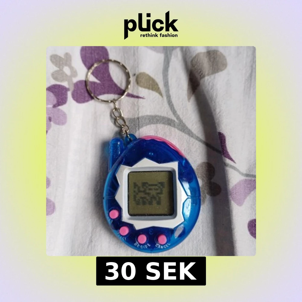 En blå tamagotchi med rosa knappar ^^ kan användas som en keychain