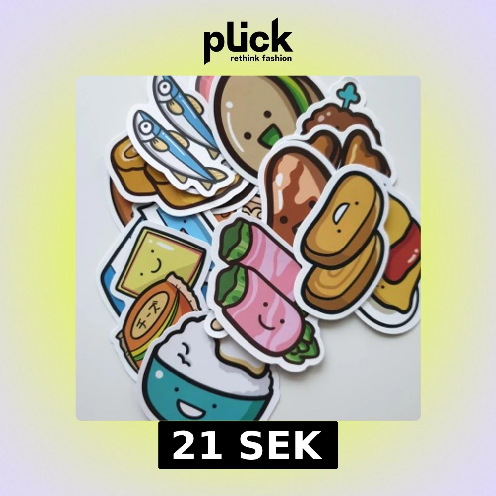 En färgglad samling med söta klistermärken som föreställer olika maträtter och snacks med glada ansikten. Perfekt för att dekorera laptops, mobilskal eller anteckningsböcker och ge din vardag en extra dos av matglädje och humor.