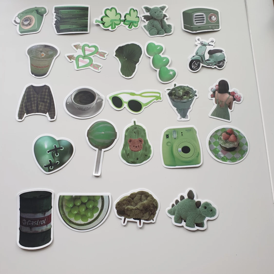 Klistermärken/stickers Färg: grön Antal: 48st Skick: oanvända Kul att använda till pyssel, scrapbooking och annat