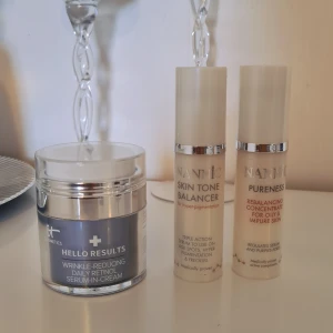 It Consmetics 50ml serum in cream ny pris är 715 kr halv kvar. Nannic Pureness , Rebalancing concentrate for oily & impure skin 30ml, 20 ml kvar, ny pris är 550kr , Nannic Skin Tone Balancer for hyper-pigmentation 30ml , 10 ml kvar, ny pris är 639kr.
