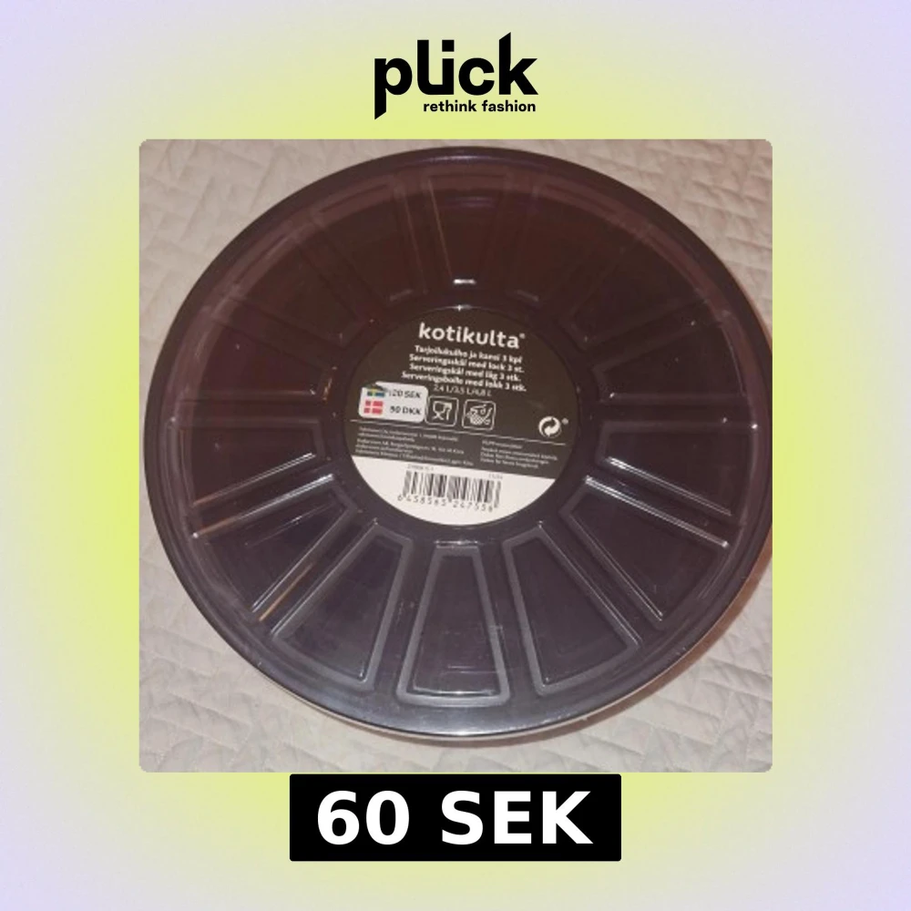 Set med 3 serveringsskålar med lock, volymer 2,4/3,5/4,8 L. Produkten är ny och inplastad