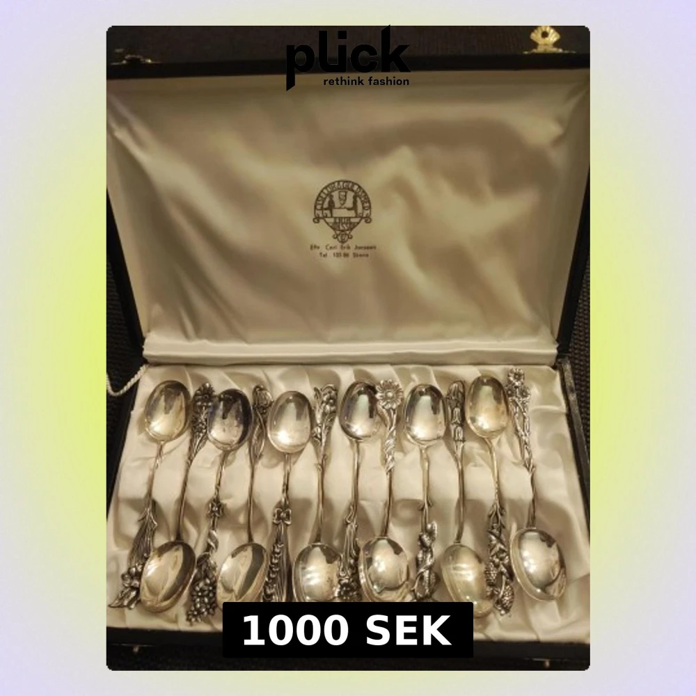 Säljer ett elegant set med 12 teskedar i äkta silver från GEWE, levereras i original ask. Varje sked har unika detaljer med blommor och blad längs skaftet, vilket ger en lyxig och vintage vibe. Perfekt för dig som gillar detaljer och klassisk design.