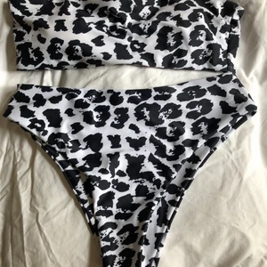 Fin bandeau bikini från Shein! Aldrig använd, köpes för två år sedan därför finns inte påse kvar! Storlek S! OBS de två sista bilderna är inte mina, färgen är svart och inte brun!