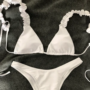 Säljer min helt oanvända bikini jag köpte från Shein. Den är inte ens testad då jag såg direkt att den va för liten. Den är i storlek L men skulle säga att den passar en s/xs. Den är väldigt liten i storleken. Skydd finns med i underdel . Köparen står för frakten 💕