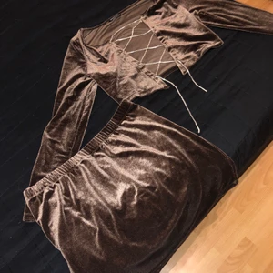 Jättefin set ifrån SHEIN, kjol o topp är båda i strl L men skulle säga att toppen är mer en M. Går och knyta runt byst med de snören som finns, på snörena är de små ”diamanter”