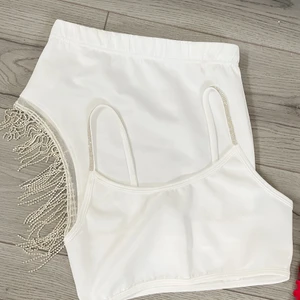 Jättefint vitt set, aldrig använt och sitter väldigt fint på med en slits i sidan på kjolen.