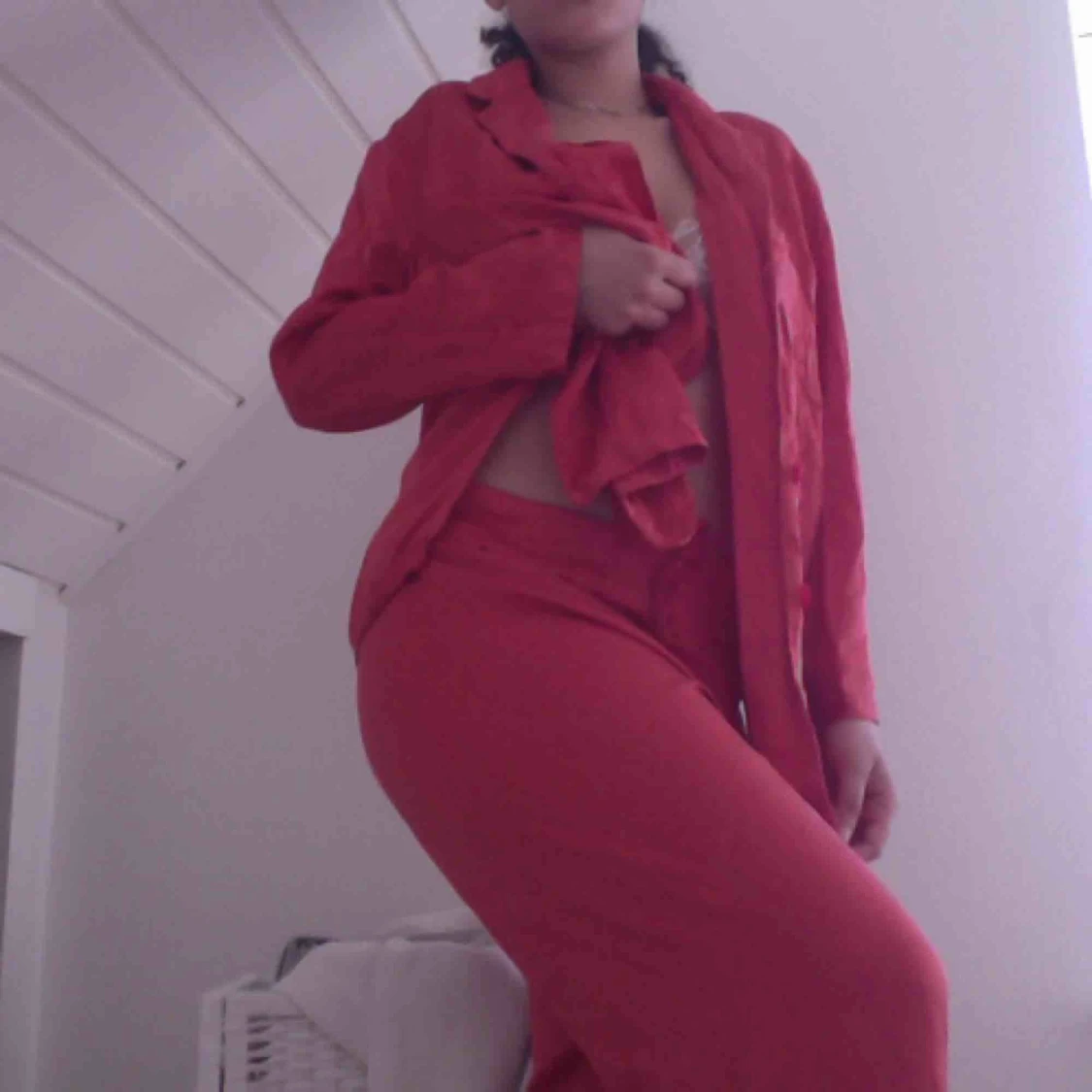 Superfint rosa 100 % silkessett, köpt second hand. Lite slitet i skrevet och saknar en knapp, men det är inget som märks.