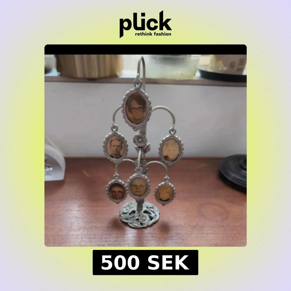 Ett unikt foto ställ i silverfärgad metall med sex ovala ramar och dekorativa blommor på foten. Perfekt för att visa upp dina favoritbilder eller små smycken. Stilen är klassisk och detaljerad, med snygga ornament runt varje ram.