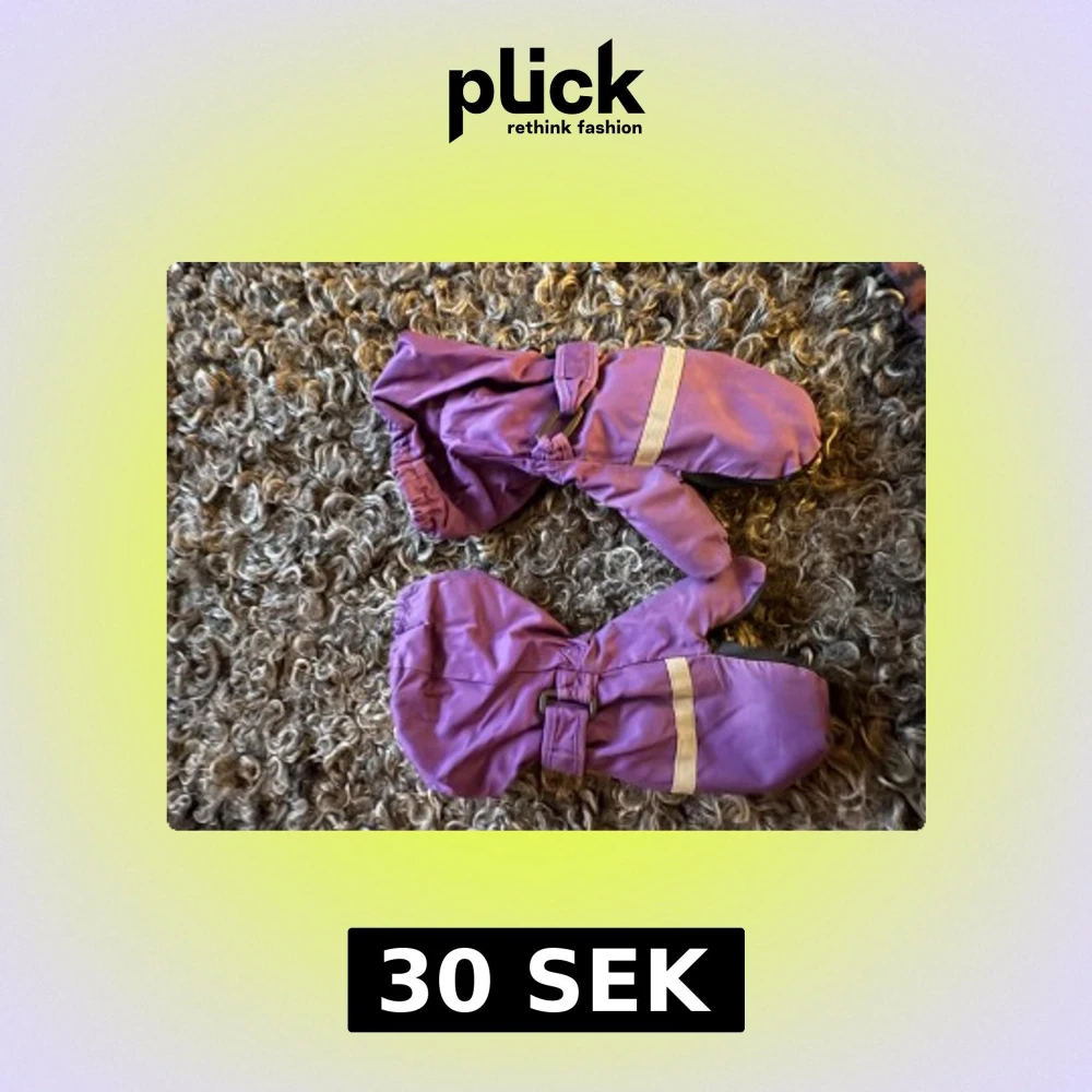 Säljer ett par lila vattentäta tumvantar med svart greppyta i syntetmaterial och breda reflexband över handryggen. Vantarna har resår vid handleden och justerbart band för extra passform. Perfekta för kalla dagar när du vill hålla händerna torra och varma.