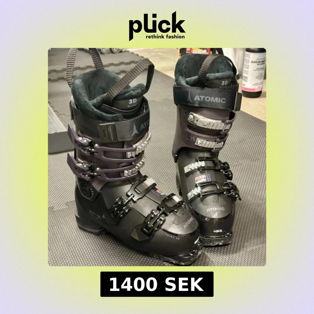 ATOMIC HAWX PRIME 95 W GW Storlek: 24.5 Flex 95. Endast använda några timmar, då de tyvärr inte passar mig. Därför är det i toppen skick. Svarta/grå med lila detaljer