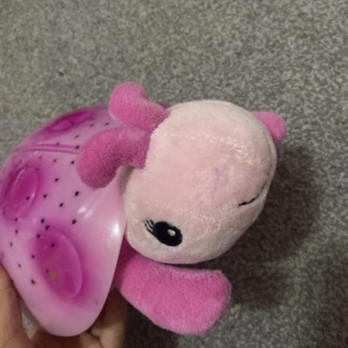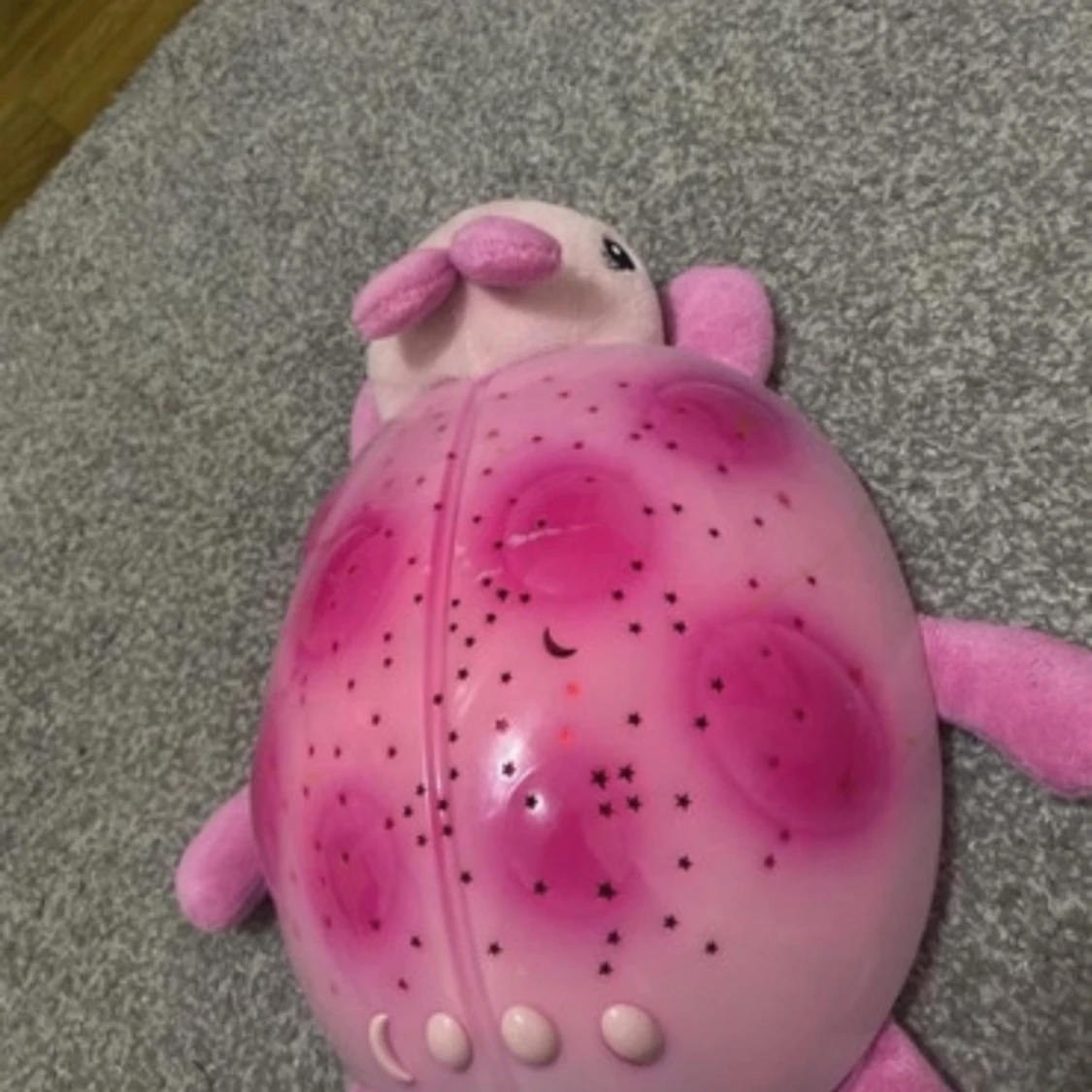 Hej, jag säljer min rosa gulliga sköldpadda. Den har röd ljus inuti som man kan tända när man trycker på knappen där bakom och man kan ändra på batteriet om ljuset är inte så bra. Den är gullig och fin